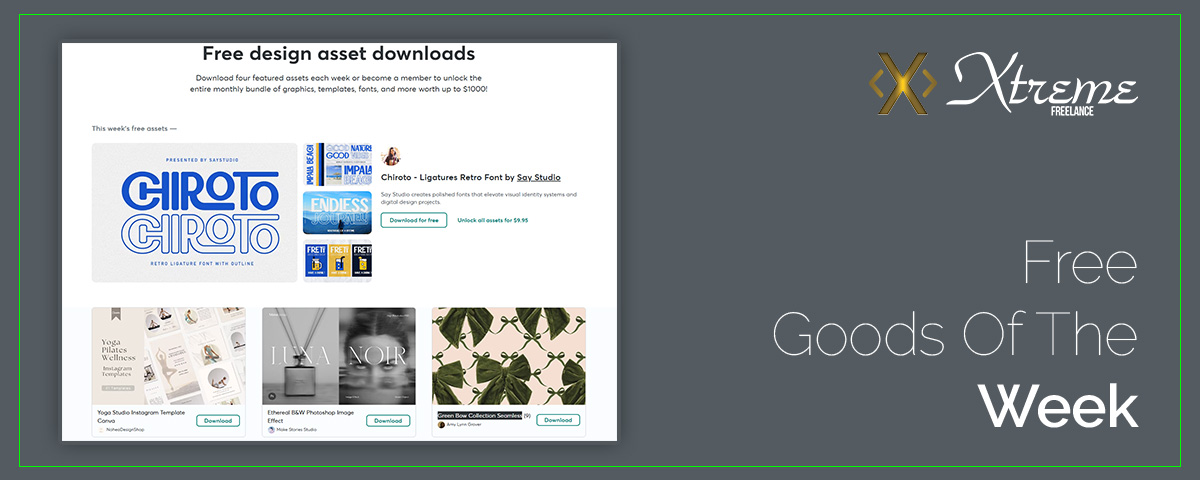 Valuable Tips to Help Your Social Marketing 447 – Interesting Articles This WeekMarch 19, 2026 Free Goods Of The Week – Mar. 23 Categories Freebies Design Tags Chiroto - Ligatures Retro Fontdesign free designsdesign freebiesEthereal B&W Photoshop Image Effectfree designfree design filesFree Goods of the WeekGreen Bow Collection SeamlessYoga Studio Instagram Template Canva Free Goods Of The Week Go now! Subscribe To Our NewsletterJoin our mailing list to receive weekly lists of interesting and usefull articles from the web and the latest news and updates from our team. SUBSCRIBE! You have Successfully Subscribed! Related postsFree Goods Of The Week – Mar. 16Read moreFree Goods Of The Week – Mar. 09Read moreFree Goods Of The Week – Mar. 02Read more